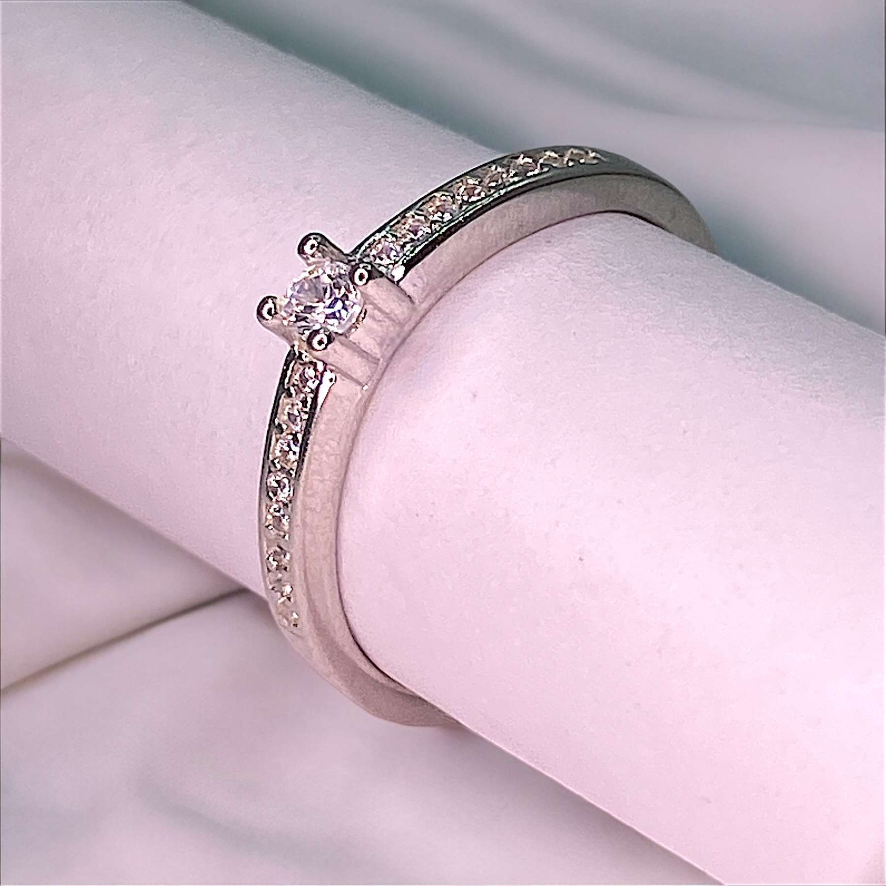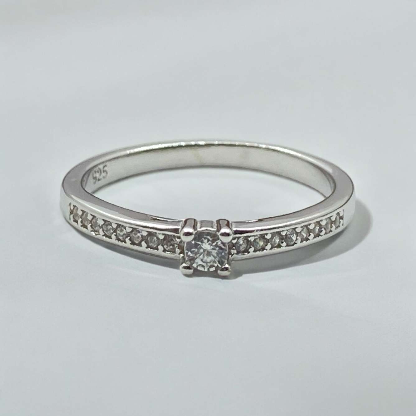 92.5 Sterling Silver With Solitaire Diamond Ring