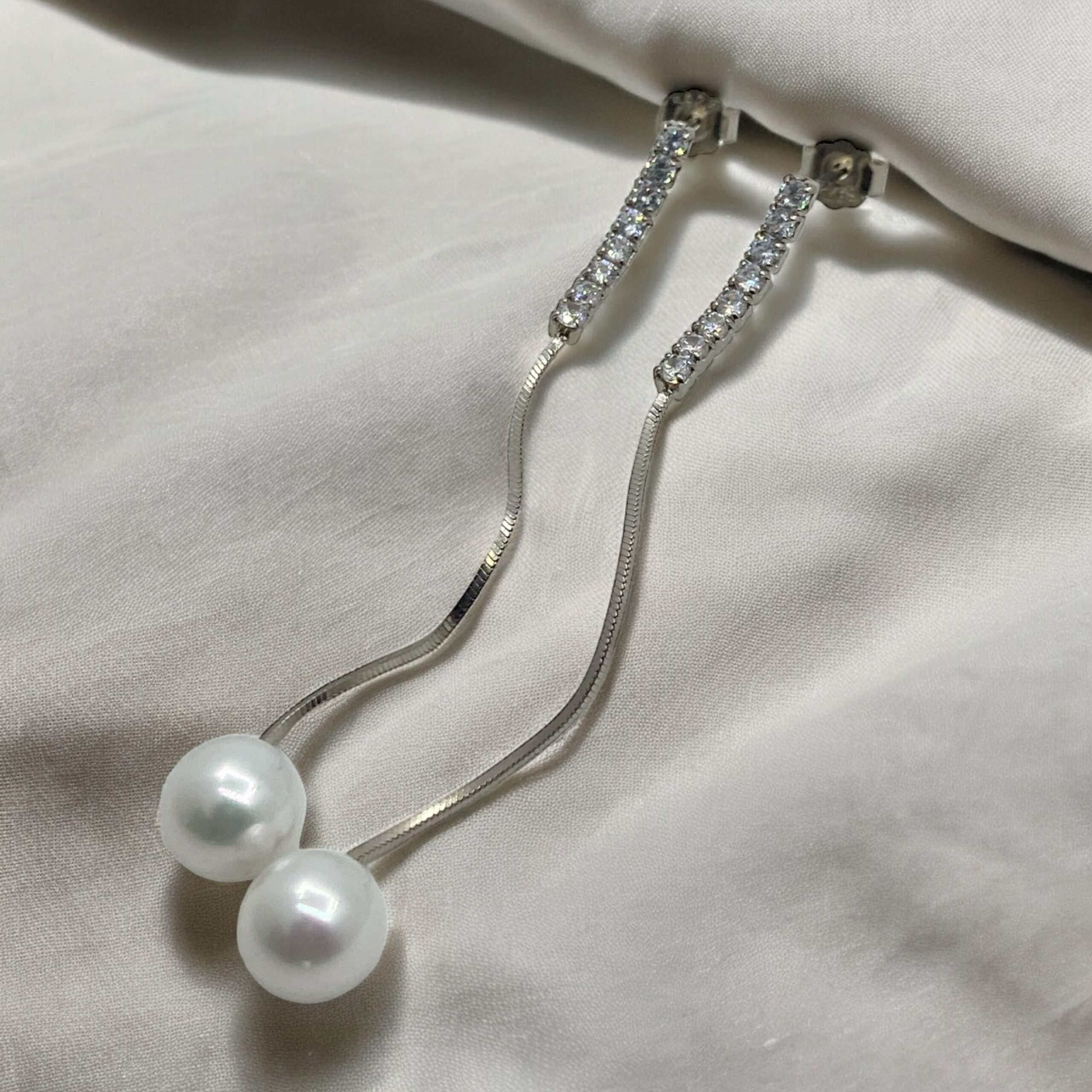 These earrings are a stunning and elegant piece of jewelry. They are crafted from 92.5 sterling silver and feature a freshwater pearl with a diamond accent. The earrings are silver in color and weigh 2.830 grams. They come in a single-unit package.
